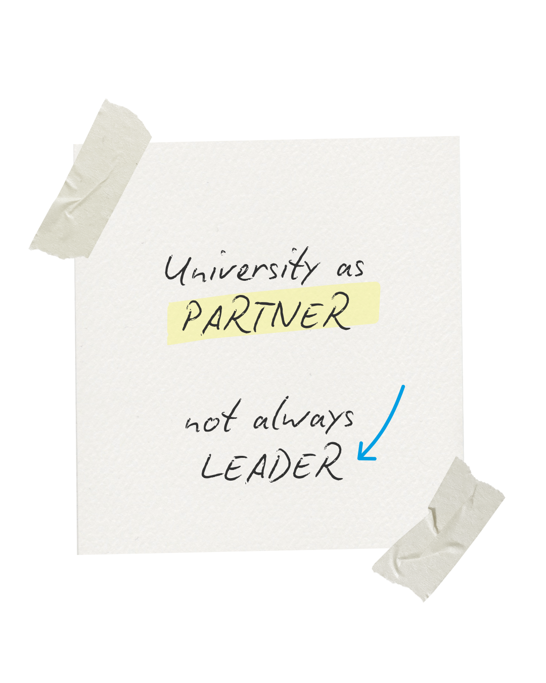 Strategic partnership development requires universities to function as genuine collaborative partners rather than presumed leaders, contributing their unique assets whilst fully respecting and amplifying the expertise, priorities, and leadership of other collaborators in their place.